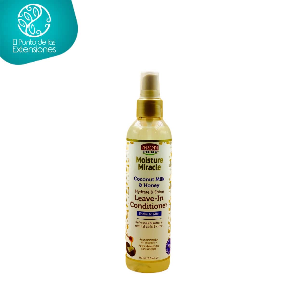 El Acondicionador sin enjuague African Pride Humectación Milagrosa repone la hidratación mientras desenreda suavemente el cabello. Elaborado con leche de coco y miel aporta hidratación y brillo. Refresca y desenreda tus rizos. Su fórmula sin parabenos, aceite mineral, sulfatos y petrolato protegen el cabello de futuros daños.
