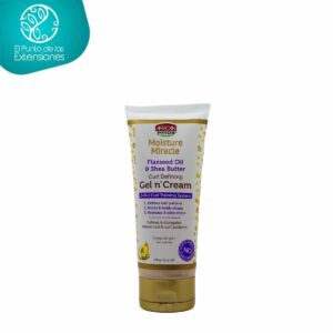 El gel y crema definidor de rizos African Pride Humectación Milagrosa hidrata en profundidad la hebra con su fórmula 3 en 1, aporta brillo y mejora el patrón natural de rizos y bobinas sin descamación. Su fórmula sin parabenos, aceite mineral, sulfatos y petrolato protegen el cabello de futuros daños. Elaborado con ingredientes naturales como: aceite de semillas de lino para un agarre natural y restauración del brillo y manteca de karité para hidratar profundamente y fortalecer y proteger el cabello.