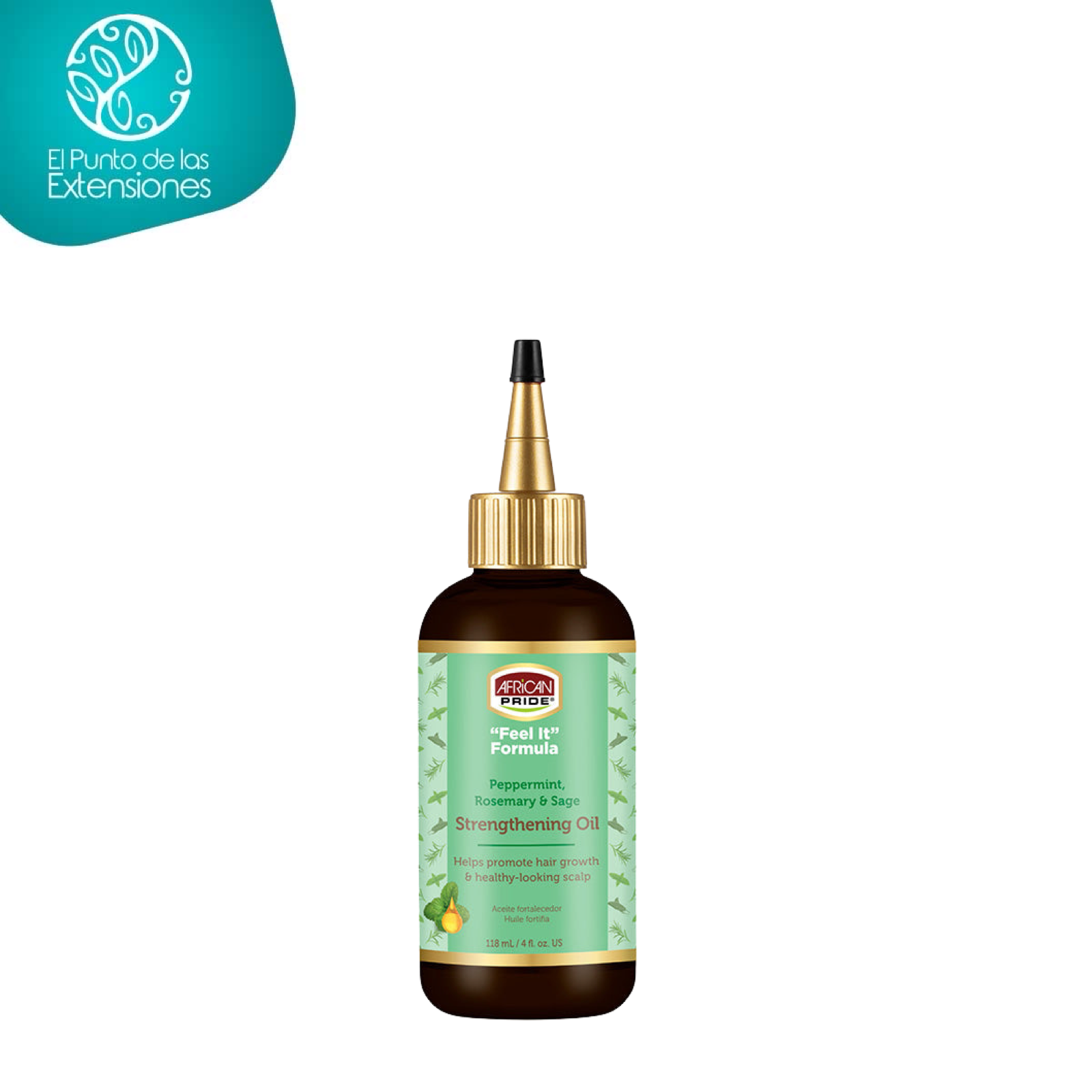 El óleo de la línea ”Feel It” de African Pride provee humectación, trata afectaciones en la piel cabelluda y ayuda a restaurar la rotura. Elaborado con ingredientes de origen natural como menta para prevenir la producción de caspa y a fortalecer el folículo, romero para ayudar al rejuvenecimiento y fortalecimiento de la hebra y óleo de salvia para estimular la piel cabelluda. Fórmula libre de sulfatos, parabenos, gluten ni aceites minerales.