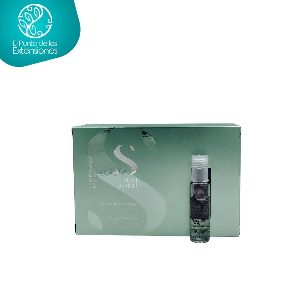 Ampolla lotion scalp renew de tratamiento energizante sin enjuague de la línea Semi Di Lino Scalp de Alfaparf Milano repara y refresca cabellos débiles con tendencia a la caída. Posee tecnología Semi Di Lino Scalp dedicada al equilibrio de la flora bacteriana en piel cabelluda, ayuda a restablecer el bienestar natural de la piel y revitalizar el cabello desde la raíz y tecnología Urban Defense Pro el cual actúa como un escudo anticontaminación al tener activo biotecnológico compuesto por macromoléculas de azúcar obtenido mediante un proceso natural de fermentación y no de síntesis. La línea scalp renew hair loss posee tecnología Microbiotic System enriquecido con complejos probióticos (bacterias naturales presentes en la piel) y prebióticos (nutrientes para la microbiota humana) que mantiene el equilibrio de la barrera cutánea, tecnología Biorenew Complex mezcla de ingredientes naturales que prolongan la vida del folículo y aumentan su vitalidad, tecnología Shine Fix Complex que proporciona 24 horas de brillo desde la raíz hasta las puntas debido a extractos de semillas de lino y tecnología Color Fix Complex con filtro UVA y UVB y antioxidantes para proteger y prolongar la belleza del color incluso después de 9 lavados, el reflejo permanece intenso y brillante hasta en un 91%. Creado y formulado en Italia y fabricado en Brasil.