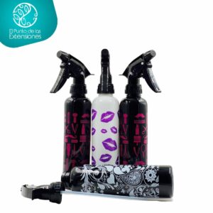 Botella plástica con boquilla de pasta dura y tubo interior en silicona en presentación pulverizador o atomizador, permite producir una fina aspersión de un líquido mediante una bomba o manija manual. Para su funcionamiento utiliza un mecanismo de bombeo recíproco. Posee boquilla graduable para regular el flujo de partículas liberadas. Ideal para humedecer rápidamente el cabello en dosis controladas y mezclar productos para tratamientos o humectaciones rápidas. Capacidad de almacenamiento 9.5oz
