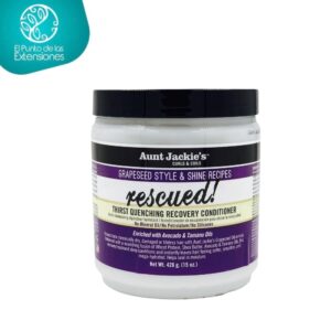 El acondicionador Aunt Jackie’s para cabellos crónicamente secos, dañados o sin vida. Trata de manera profunda dejando sensación de suavidad e hidratación instantánea en el cabello. Ayuda a sellar la hidratación de la hebra dejando ondas, rizos y bobinas suaves y difuminadas. Elaborado con ingredientes naturales como aceite de semilla de uva para ayudar a remover caspa o piel muerta causada por la sequedad en la piel cabelluda, aceite de aguacate para hidratar cabellos secos, aceite de tamanu promueve la recuperación, cicatrización y fortalecimiento de la hebra y manteca de karité para hidratar profundamente y proteger el cabello de daños causados en procesos químicos. Su fórmula sin sulfatos, parabenos, petrolatos, siliconas ni aceites minerales protegen el cabello de futuros daños. Producto cruelty free, no testado en animales.