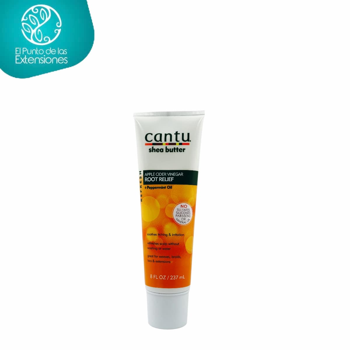 El alivio de raíz de Cantu proporciona una sensación de frescura y limpieza en la piel cabelluda. Limpia profundamente mientras nutre y calma deteniendo la picazón y tensión. Textura levemente gelatinosa. Ideal para cabellos tejidos, con trenzas, dreads (rastas) o extensiones. Elaborado con ingredientes naturales como vinagre de sidra de manzana para equilibrar el pH de la piel cabelluda sellando la cutícula y combatiendo la caspa, aceite de menta para ayudar con la sequedad en la piel cabelluda evitando picazón e inflamaciones y manteca de karité pura para hidratar profundamente y proteger el cabello de daños causados en procesos químicos. Su fórmula sin parabenos, siliconas, ftalatos, gluten, parafina, sulfatos ni aceites minerales protegen el cabello de futuros daños. Producto cruelty free, no testado en animales.