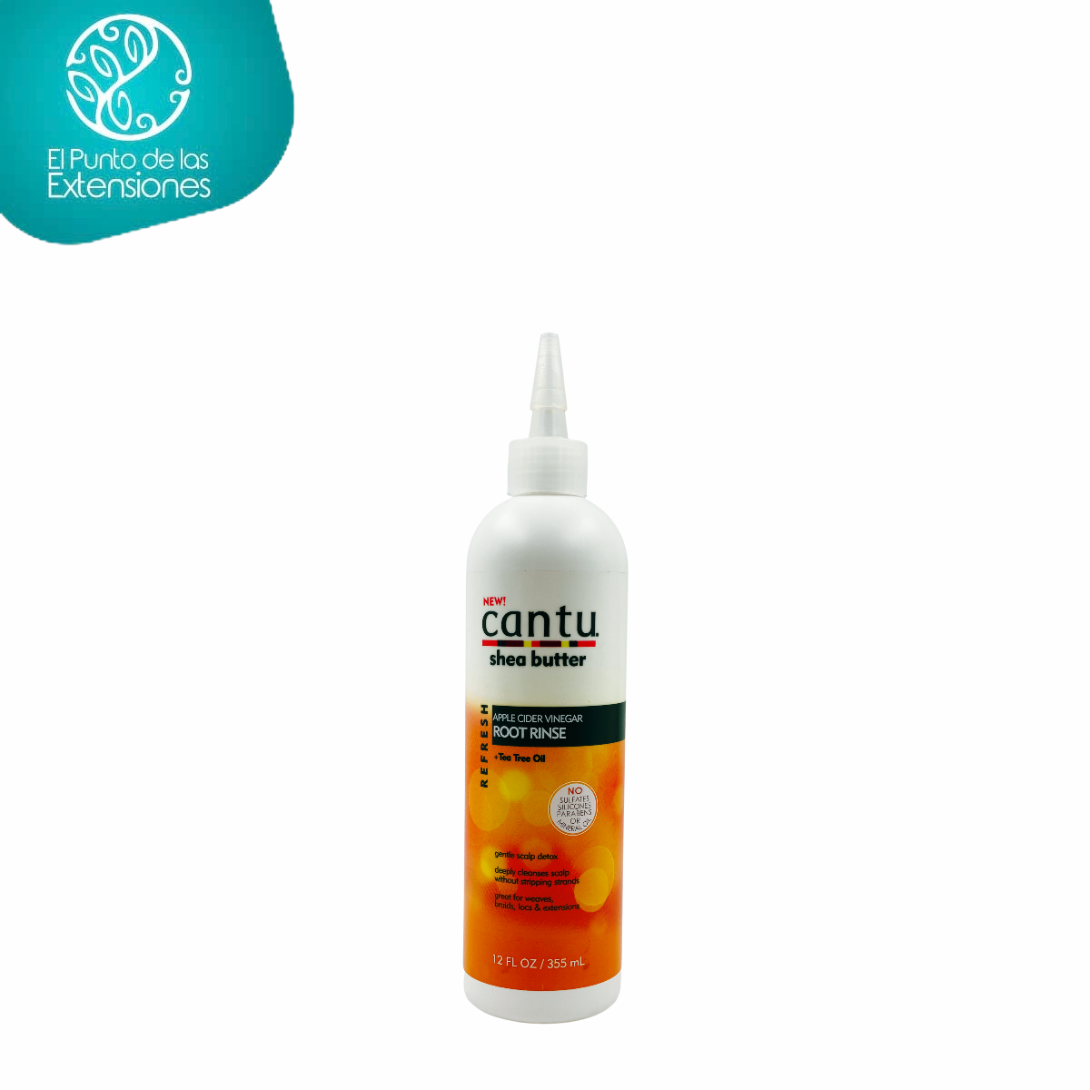 El enjuague de raíz de Cantu reemplaza el champú cuando es necesaria una limpieza desintoxicación en la piel cabelluda. Limpia la acumulación e impurezas dejando el cabello fuerte, saludable y con brillo. Ideal para cabellos tejidos, con trenzas, dreads (rastas) o extensiones. Elaborado con ingredientes naturales como vinagre de sidra de manzana para equilibrar el pH de la piel cabelluda sellando la cutícula y combatiendo la caspa, aceite de árbol de té para prevenir infecciones que conllevan a la pérdida del cabello gracias a los componentes activos de terpenoides y aceites esenciales y manteca de karité pura para hidratar profundamente y proteger el cabello de daños causados en procesos químicos. Su fórmula sin parabenos, siliconas, ftalatos, gluten, parafina, sulfatos ni aceites minerales protegen el cabello de futuros daños. Producto cruelty free, no testado en animales.