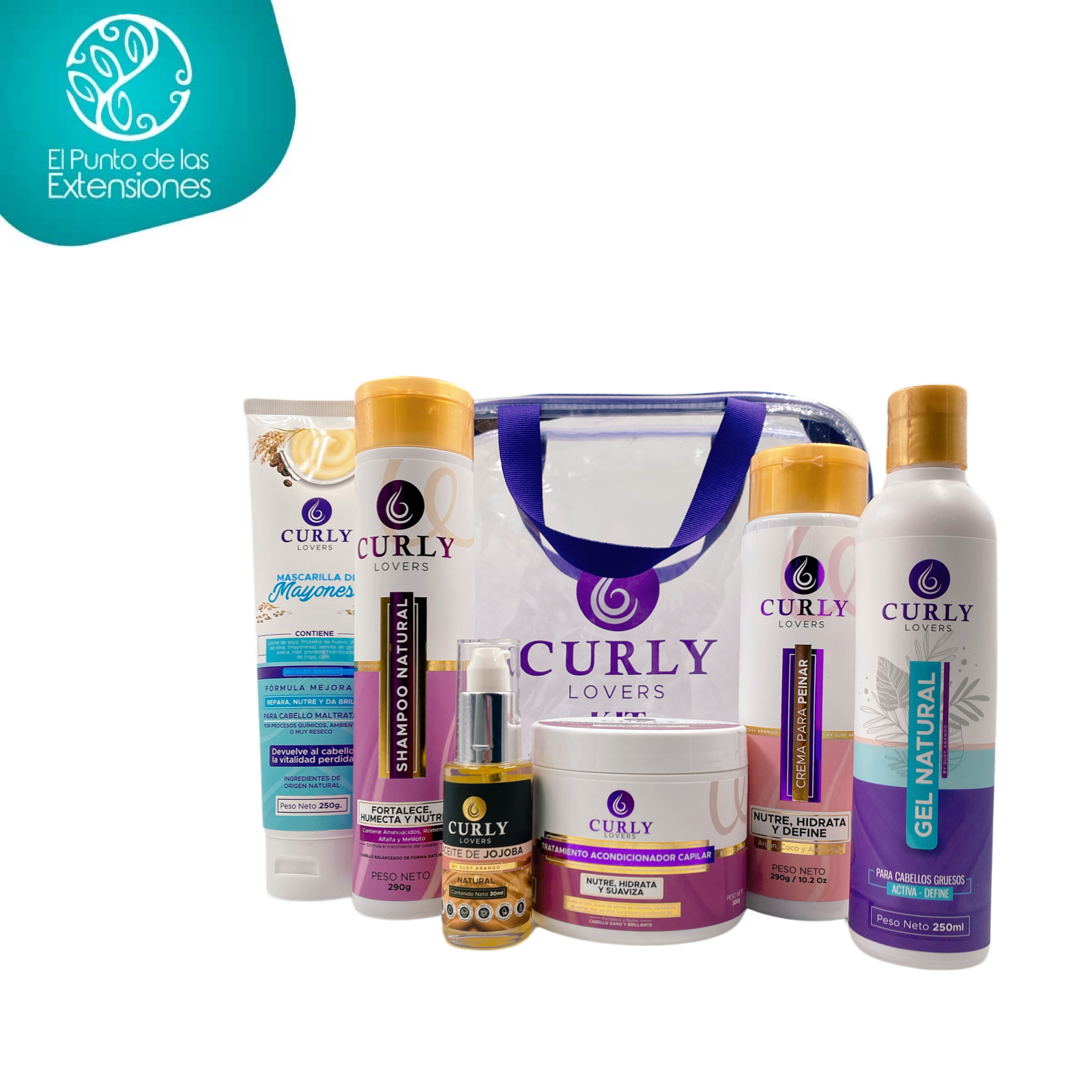 Kit Rutina Completa de Curly Lovers ofrece un set de sus productos en tamaño estándar + 1 cosmetiquera para que puedas llevarlos de manera cómoda y cuidar tu cabello. Incluye 6 productos en ”tamaño estándar” y un estuche impermeable con diseño de la marca.