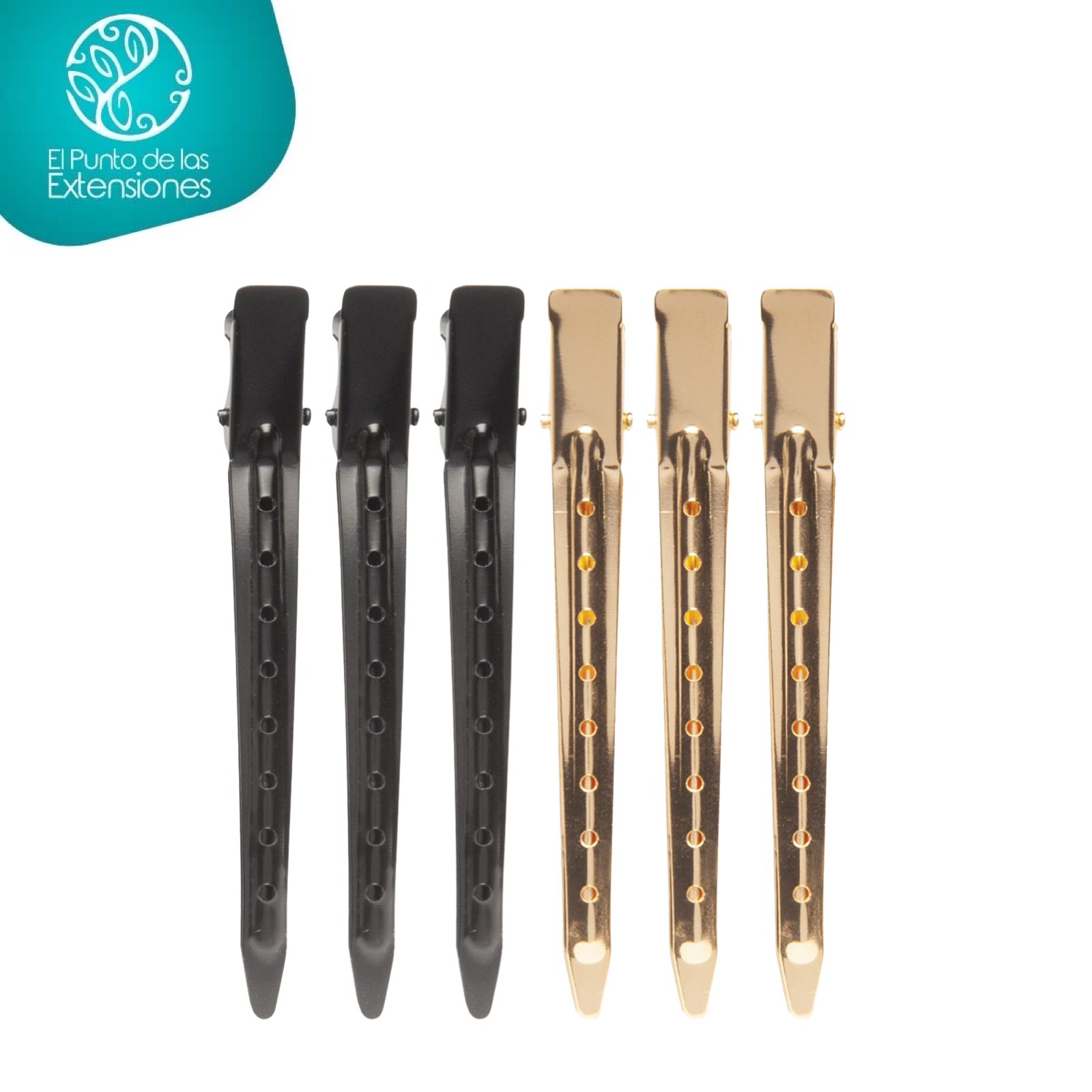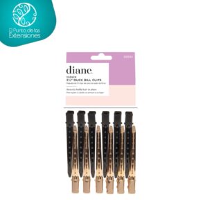 Pinzas para cabello de DIANE permite sostener temporalmente secciones de cabello. Diseñada con bordes pulidos y agujeros en la parte superior para permitir un correcto paso de aire o agua, con muelle metálico resistente que mantiene las dos partes cerradas. Fabricado con metal que resiste una temperatura de hasta 230º centígrados; ideal para uso con herramientas de calor como: planchas, secadores, pinzas, etc.