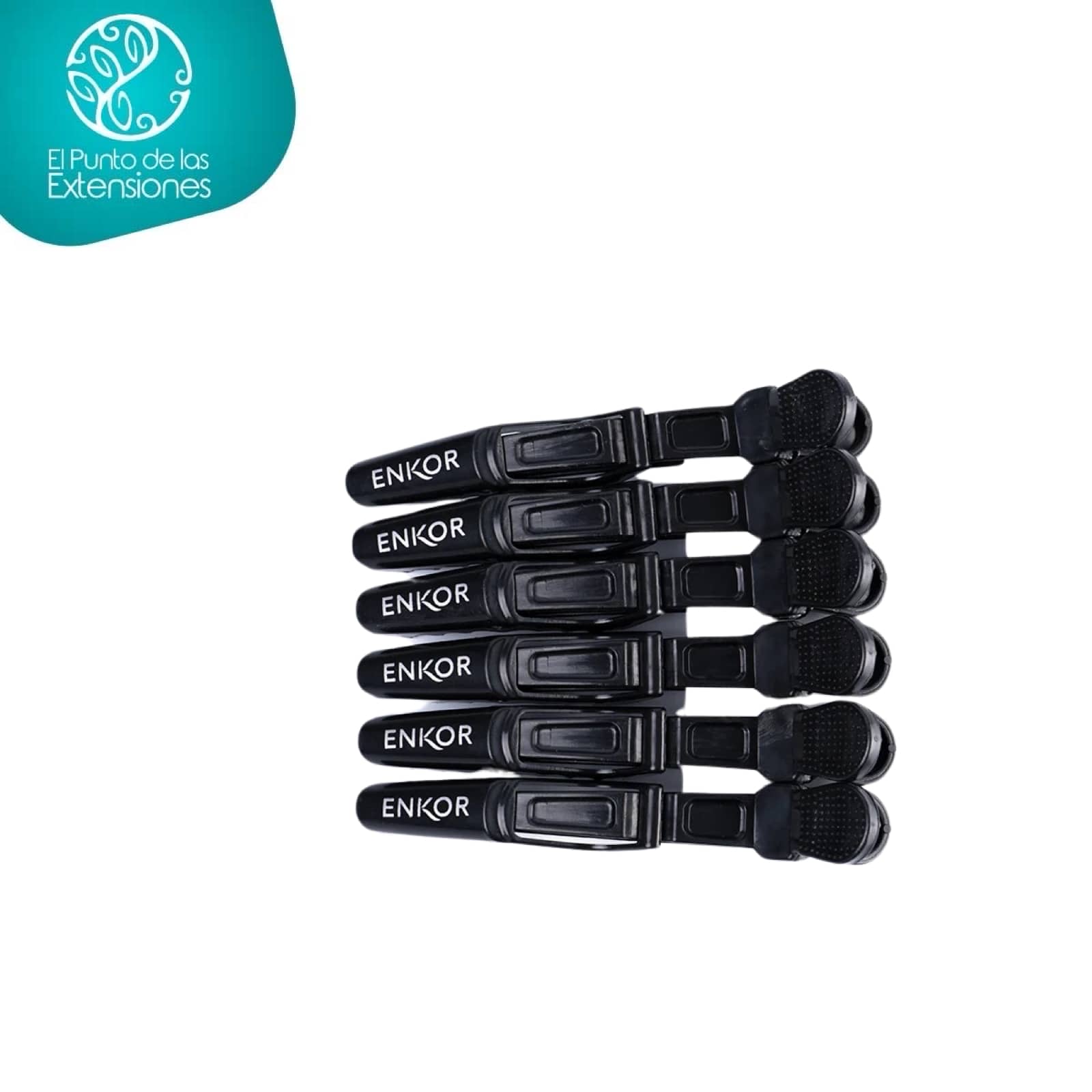 Pinzas para cabello de ENKOR permite sostener temporalmente secciones de cabello. Diseñada con pequeños dientes en la parte interna para un mejor agarre, agarre adicional tipo ”cocodrilo”; con muelle metálico resistente que mantiene las dos partes cerradas. Fabricado con plástico que resiste una temperatura de hasta 230º centígrados; ideal para uso con herramientas de calor como: planchas, secadores, pinzas, etc.
