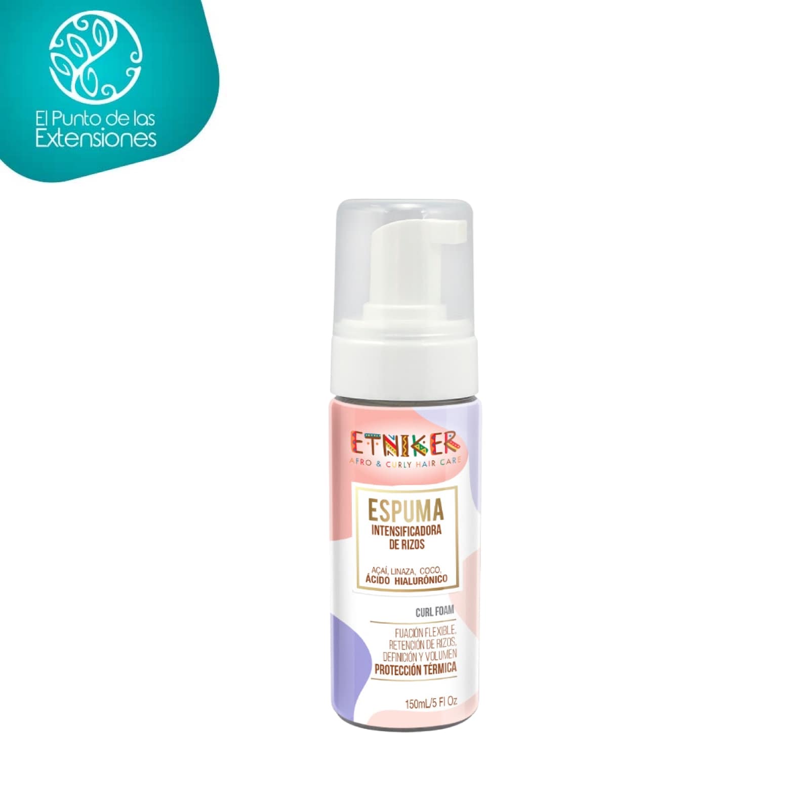 La espuma intensificadora de rizos de Etniker proporciona definición y fijación a ondas, rizos y bobinas naturales dejándolos hidratados, con cuerpo y rebote. Ideal para cabellos delgados con tendencia al aplastamiento. Enriquecido con ingredientes naturales como acai para ayudar a prevenir el daño en la hebra, linaza para hidratar y reparar gracias a su contenido de omega 3, coco para aportar brillo y suavidad y ácido hialurónico para hidratar y promover el la elasticidad del tejido aumentando la generación de colágeno. Su fórmula sin siliconas, parabenos ni aceites minerales protegen el cabello de futuros daños. Hecho en Colombia.