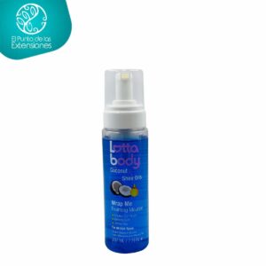 La espuma LottaBody envuelve Me añade alta fijación a peinados y rizos. Logra el efecto ”sleek bun” alisado perfecto en tus looks o para una definición precisa con chumis o flexi rods. Elaborado con aceites naturales de coco y karité hidratan profundamente desde el interior de la hebra otorgándole brillo y suavidad.