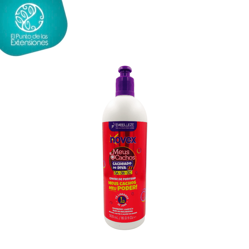 La crema de peinar Intensos de la línea Meus Cachos de Novex define rizos con patrón de rizo definido. Proporciona brillo e hidratación intensa a cabellos finos o frágiles sin aportarle peso. Actúa como memorizador de rizos. Elaborado con arándanos para proteger el brillo, mantener la producción de colágeno gracias a los antioxidantes, nutrientes y vitaminas presentes en ellos y mezcla de óleos (oliva, argán, macadamia, coco, girasol, aguacate y linaza) ricos en vitaminas, ácidos grasos y ceramidas proporcionando los nutrientes esenciales al cabello. No contiene sal, sulfatos, siliconas ni petrolatos. Hecho en Brasil.