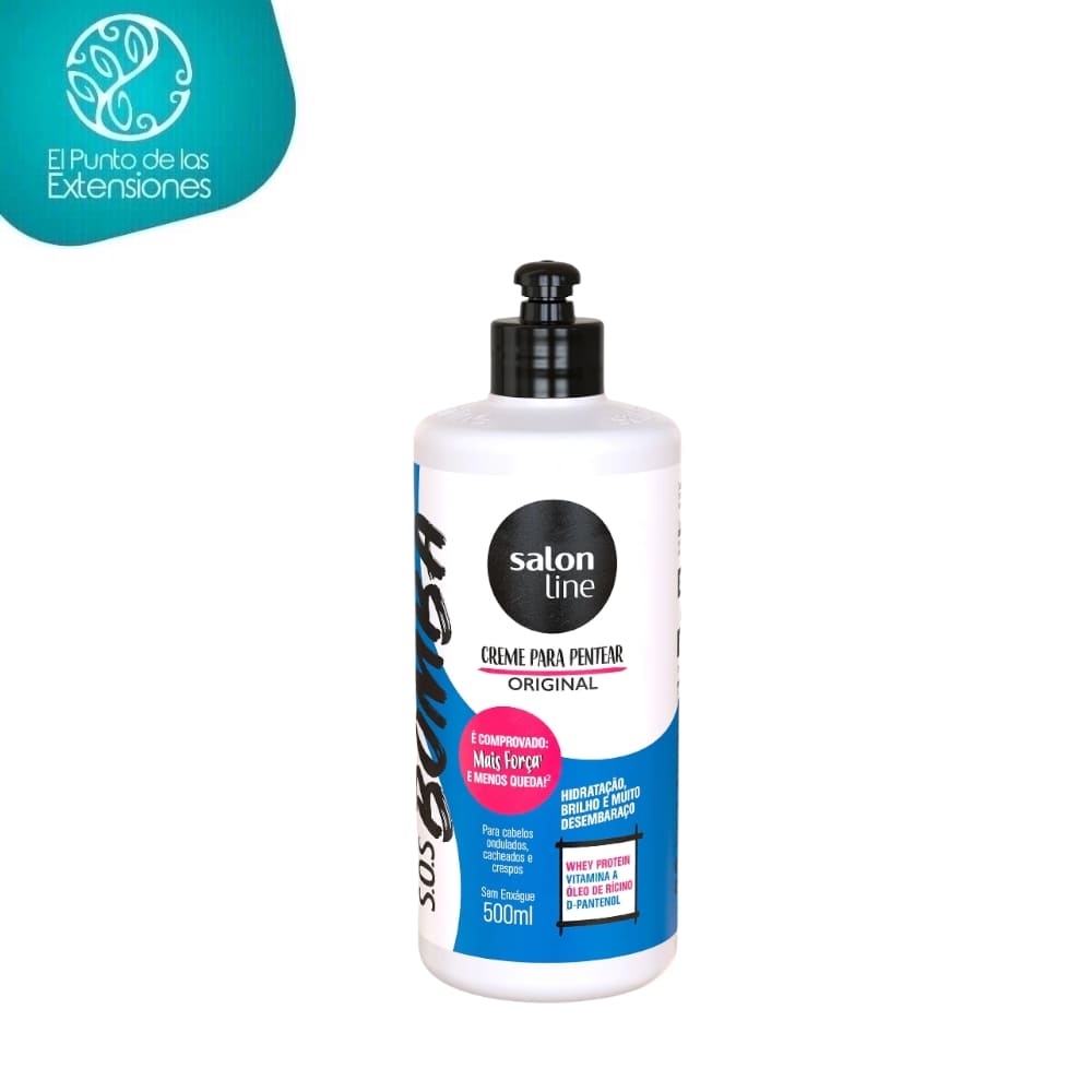 La crema de peinar bomba original de la línea S.O.S Bomba de SalonLine hidrata y ayuda a desenredar sin importar la textura ondulada, rizada, crespa o afro de la hebra, dejándola fuerte y promoviendo el crecimiento sano. Elaborado con proteína de suero para restaurar la fibra capilar dañada al ser rico en aminoácidos esenciales, vitamina A para fortalecer la hebra y mejorar la textura de la fibra capilar, aceite de ricino para nutrir profundamente y promover el crecimiento, d-pantenol para mantener la hidratación y biotina para cerrar las puntas abiertas, prevenir la caída y fortalecer el cabello. Producto vegano. Producto cruelty free, no testado en animales.