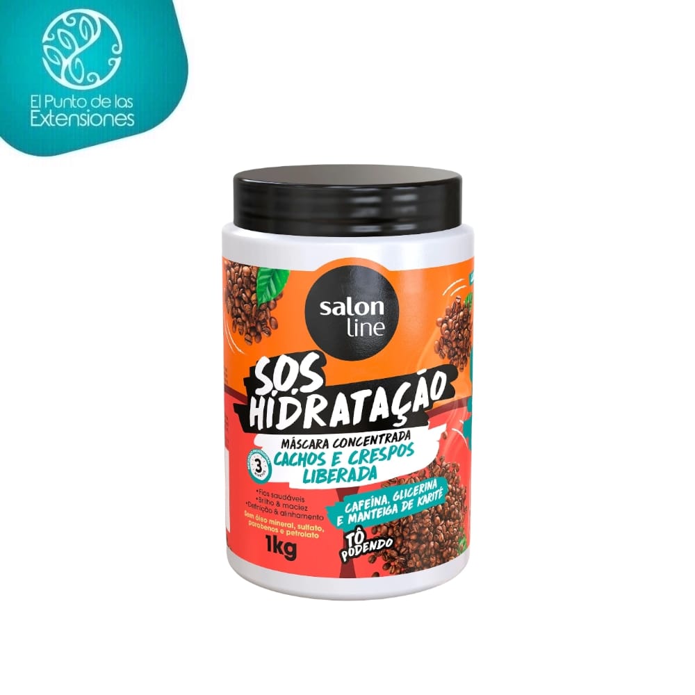 La mascarilla hidratante de la línea SOS Hidratación de SalonLine proporciona hidratación intensa a cabellos ondulados, rizados, crespos y afro dejando una hebra saludable, evitando el encrespamiento y potenciando el brillo. Facilita la rutina de definición con el uso regular. Elaborado con cafeína para estimular el crecimiento mediante la activación de la circulación en la piel cabelluda, glicerina para hidratar hasta las puntas y prevenir puntas abiertas y fortaleciendo el cabello y manteca de karité para hidratar profundamente y proteger el cabello de daños causados en procesos químicos. Producto vegano libre de óleos minerales, sulfatos, parabenos y petrolatos. Producto cruelty free, no testado en animales. Hecho en Brasil.