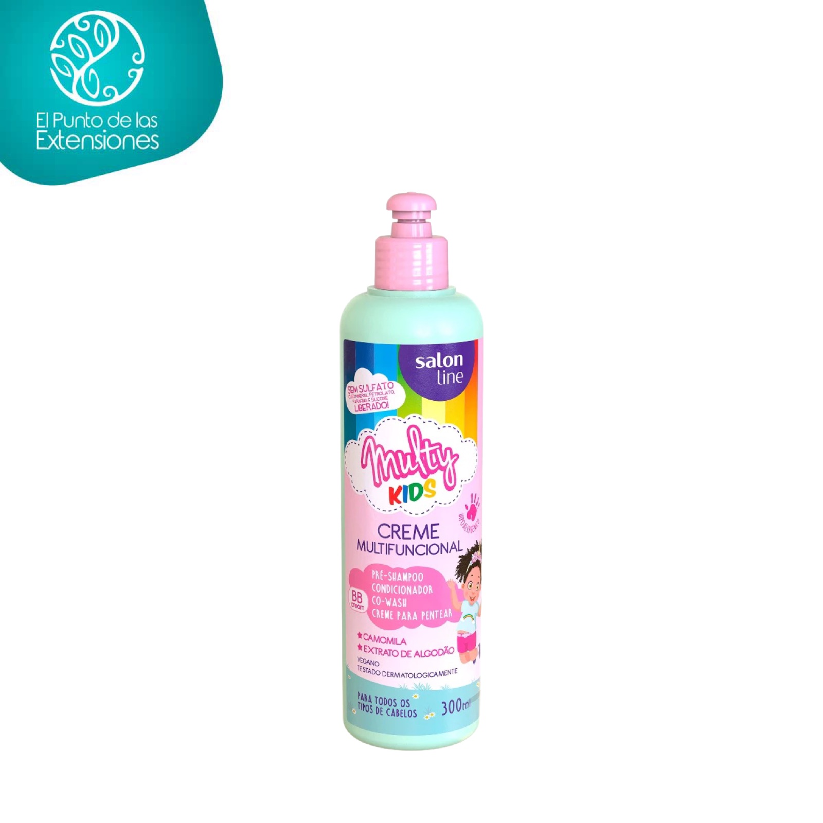 La crema multy de SalonLine puede usarse como pre-champú, acondicionador, co-wash y crema de peinar. Permite desenreedar e hidratar el cabello de los más pequeños dejándolo suave, manejable y protegiéndolo de las agresiones externas. Elaborado con manzanilla para equilibrar los aceites naturales de la piel cabelluda y fortalecer la hebra y extracto de algodón que proporciona suavidad y brillo mientras protege la hebra de agresiones externas. Producto hipoalergénico. Producto dermatológicamente testado. Producto cruelty free, no testado en animales.